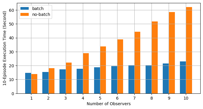 same code on both batch and no-batch modes using different numbers of observers,